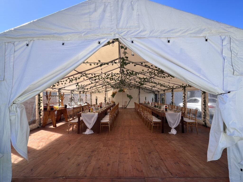 Organizacja przyjęcia w plenerze jakim jest wesele w namiocie to coraz popularniejsza opcja wśród par, które marzą o wyjątkowym i niezapomnianym dniu. Wesele w plenerze daje nieograniczone możliwości aranżacyjne i pozwala stworzyć romantyczny klimat w otoczeniu przyrody. Możliwość wyboru dowolnej lokalizacji oraz dowolna wielkość namiotu bankietowego sprawia, że młoda para może powiedzieć sobie „tak” w miejscu, które ma dla nich szczególne znaczenie – w ogrodzie, nad jeziorem, na polanie, a nawet w domowym zaciszu.